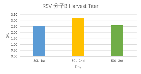 RSV分子A的5個批次的表達(dá)量均在2g/L左右,RSV分子B的表達(dá)量最高可達(dá)3.2g/L左右。