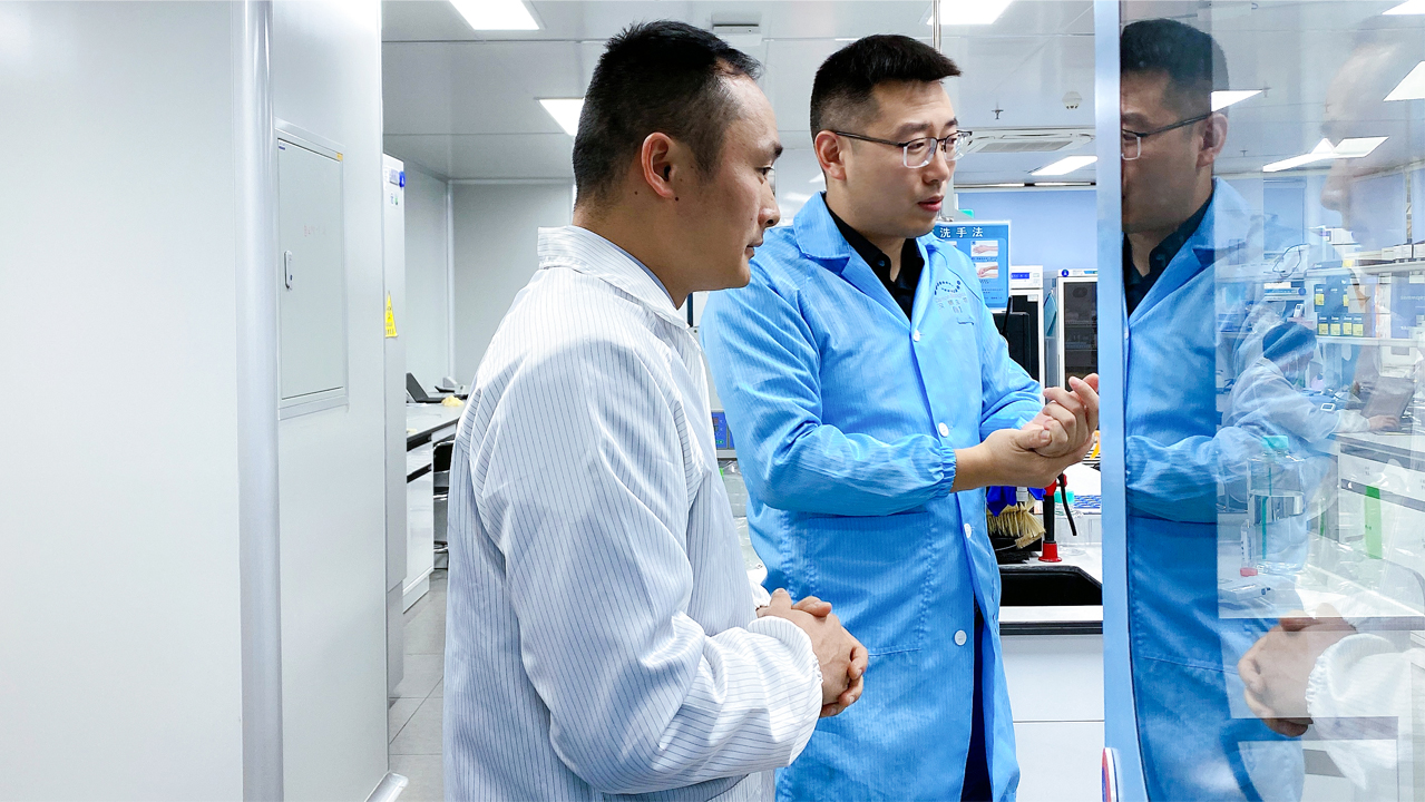 隨后,沈瀟博士與張光南教授一行參觀了廣州伯利恒研發(fā)基地,詳細(xì)講解了CMC開發(fā)的各類平臺。其中,沈瀟博士特別提到IgM平臺(IgMaxTM表達(dá)載體平臺和IgMasterTM工藝平臺),我們很早就布局搭建了這個平臺,去年遇到客戶需求,我們便能迅速反應(yīng),并將產(chǎn)量做到了業(yè)界最高——8g/L(大部分文獻(xiàn)中IgM產(chǎn)量是低于1g/L)。張光南教授對漢騰生物的創(chuàng)新發(fā)展表示肯定,并對沈瀟博士在粵港澳大灣區(qū)生物醫(yī)藥領(lǐng)域所作的努力表示高度的贊揚。