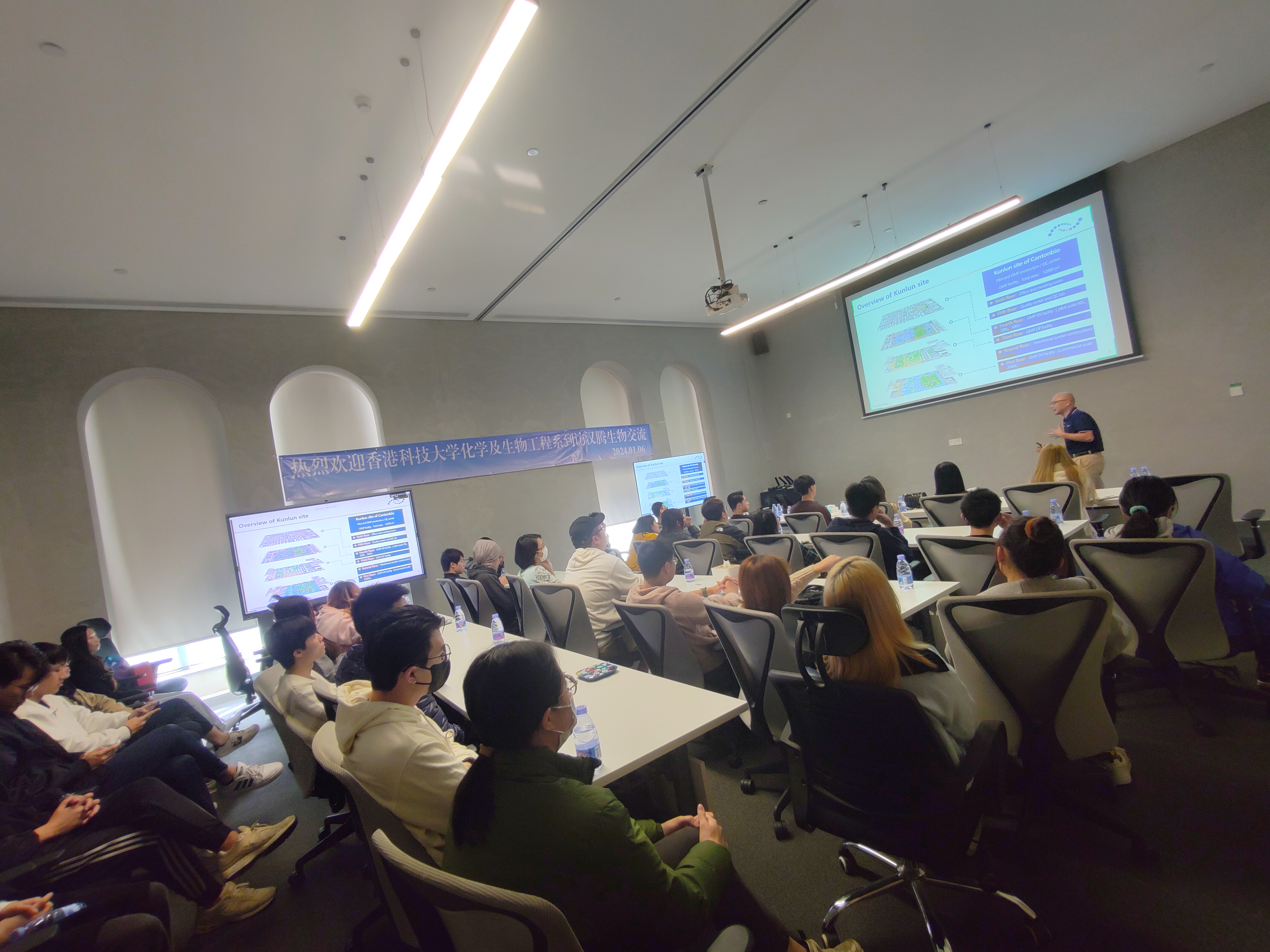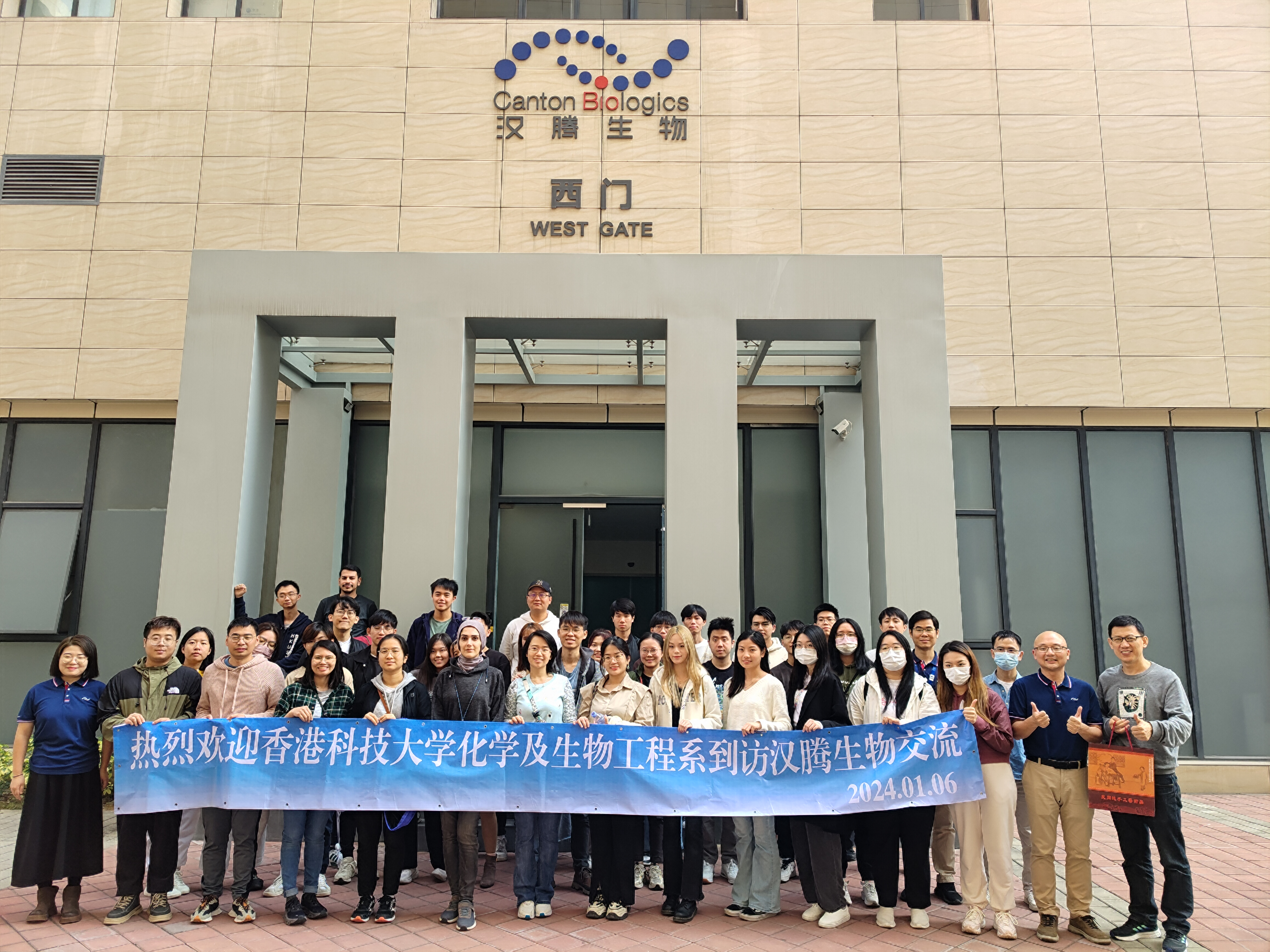 2024年1月5-6日,香港科技大學(xué)劉元帥教授帶領(lǐng)40多名來自化學(xué)與生物工程系的師生到訪漢騰生物(Canton Biologics), 副總裁張春華先生代表漢騰高管團隊熱情接待了來訪嘉賓并作歡迎致辭。這是繼2023年10月漢騰生物CEO沈瀟博士在香港科大舉行專題演講交流后,雙方的又一次深度的合作互動和探討。