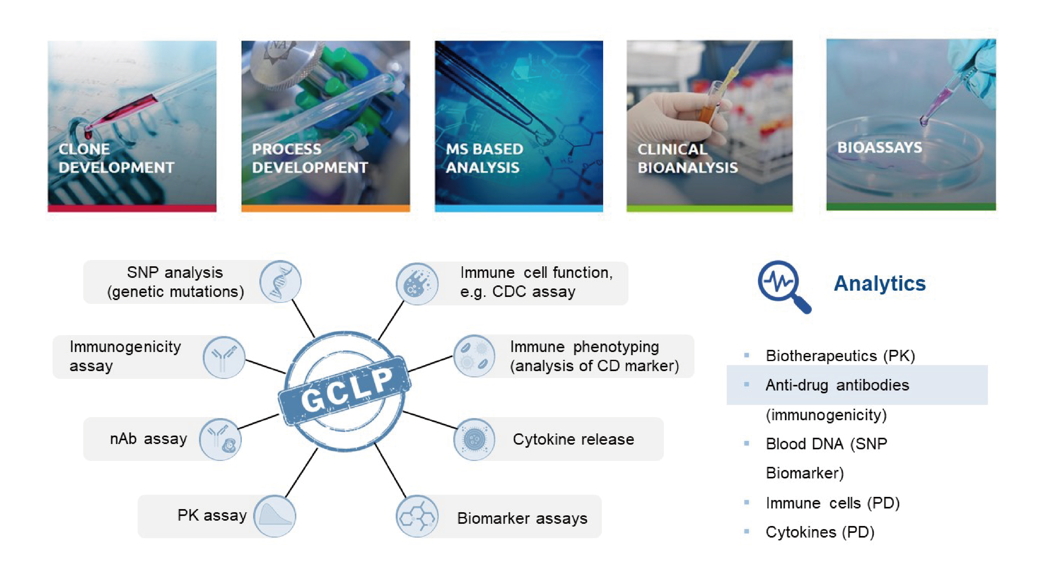 漢騰生物擁有全流程全方位的生物藥大分子分析檢測平臺,完善的質(zhì)量保證體系,完全依從相關(guān)法規(guī),保證操作合規(guī)性及數(shù)據(jù)的完整性,可支持產(chǎn)品表征研究、了解分子的關(guān)鍵質(zhì)量屬性,制定可靠的質(zhì)量控制策略等。我們時刻關(guān)注最新的法規(guī)政策,不斷升級技術(shù)配備,以便更快、更好、更全地為客戶提供一站式的分析解決方案。涵蓋單抗、雙抗、重組/融合蛋白、蛋白疫苗、mRNA疫苗、AAV 載體、質(zhì)粒、重組/合成多肽、核酸藥物、ADCs等分析研究。